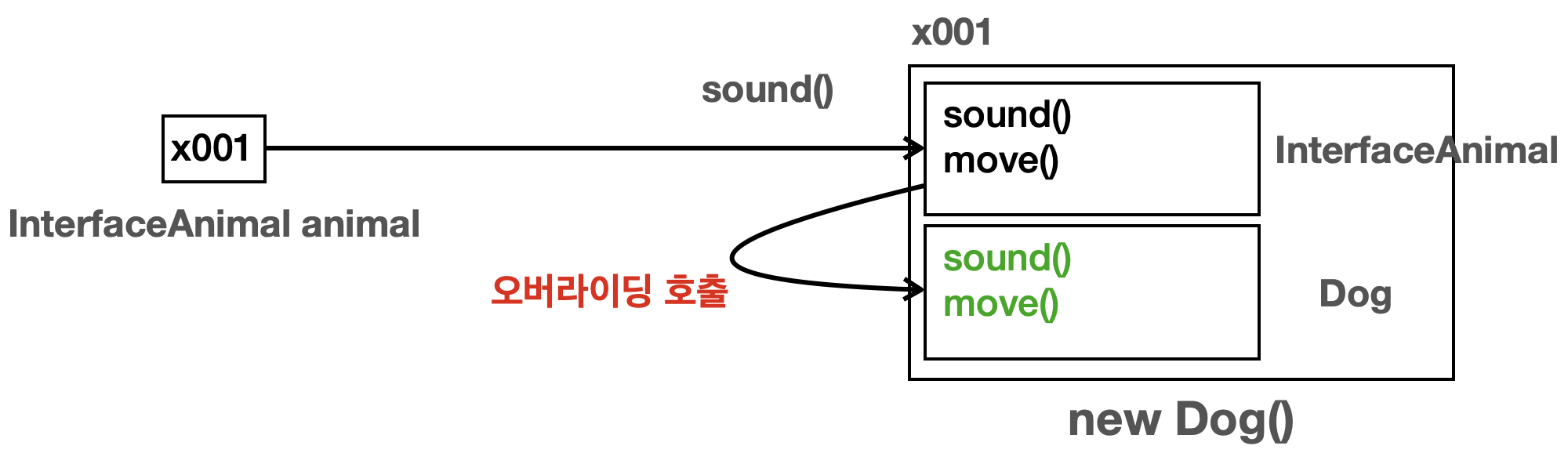 - 동일한 메서드가 존재해도, 구현은 Child가 합니다. 그리고 오버라이딩에 의해 Child에 있는 methodCommon()이 호출됩니다.