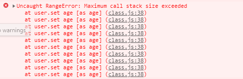 근데 setter를 보면 this.age=value 라고 또다시 = value 라고 프로퍼티에 값을 할당하려 하니 setter가 다시 호출이 되는 것이다.