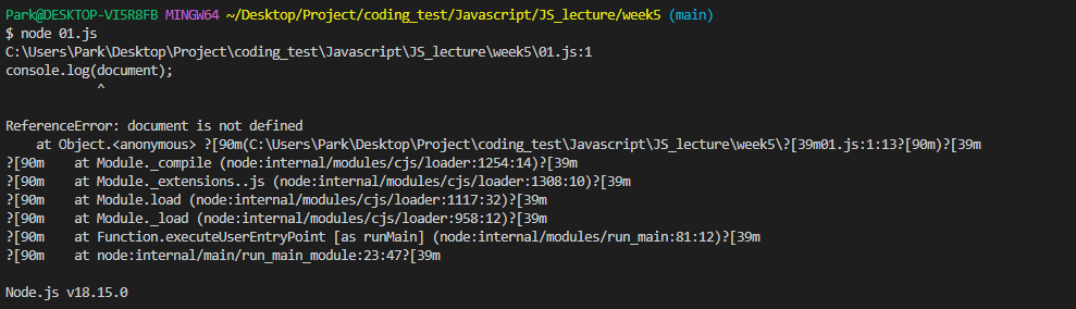위 내용을 보면, DOM은 브라우저에 내장되어 있기 때문에, Node 환경에서는 나오지 않고 Chrome에서만 나오는 것을 알 수 있다.