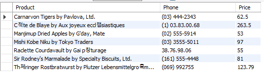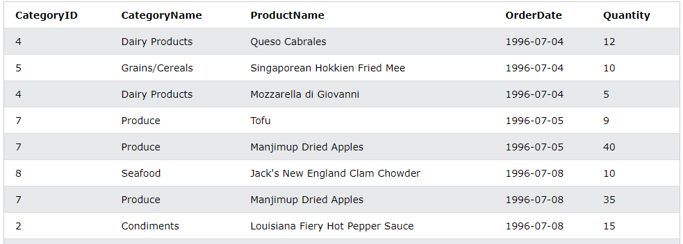 왼쪽은 Category의 항목, 오른쪽은 Products의 항목을 나타낸다.