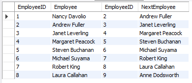 ON E1.EmployeeID + 1 = E2.EmployeeID;