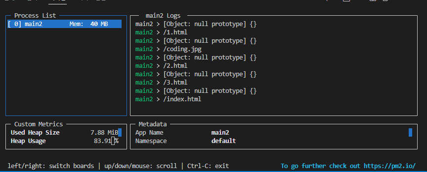 터미널에 node main.js 입력하여 실행시킨 후 브라우저에 http://localhost:3000/?id=html 입력하여 서버에 접속하면 터미널 창에 다음과 같이 뜬다.